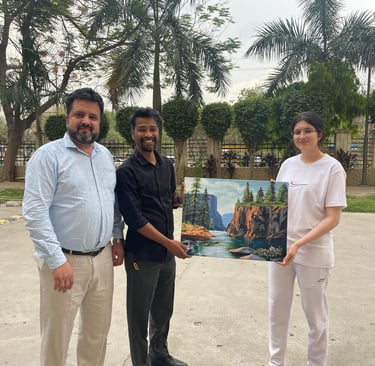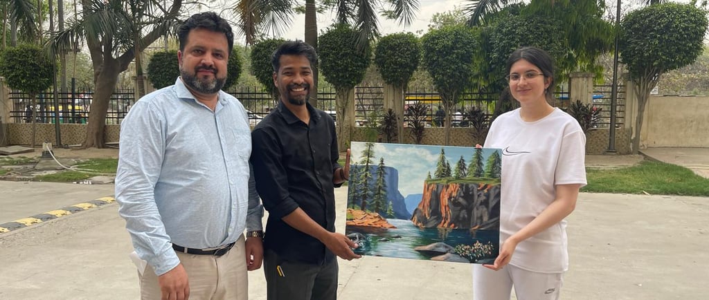 In a heartfelt gesture of appreciation, Maria Malikzada, one of the distinguished teachers at ASC, presented a beautiful painting to Mr. Anand Vinod Toppo, the Center Manager of BOSCO Bhogal. The artwork, created by Maria, symbolizes the spirit of dedication, hard work, and the enduring impact of education. Ms. Maria Malikzada expressed her gratitude for Mr. Toppo's leadership and the unwavering support he has provided to both students and staff at the center. The painting, which reflects the theme of growth and learning, was received with great admiration and appreciation. Mr. Anand Vinod Toppo, in his response, thanked Maria for the thoughtful gift and acknowledged the significant role ASC plays in shaping the future of its students. This exchange of appreciation was a testament to the strong community bond and shared commitment to educational excellence.